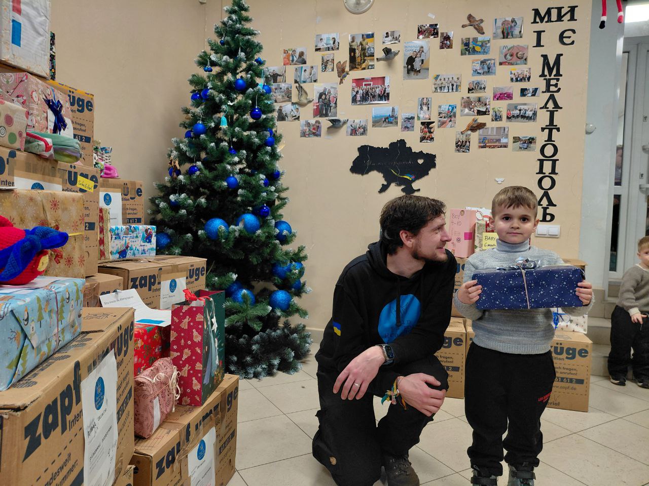 Під час зустрічі наймолодші мелітопольці отримали подарунки, долучилися до творчих активностей – виготовляли годівнички для птахів та розмальовували прапор для німецьких благодійників як символ вдячності. Старші учасники заходу отримали термочашки, термоси, побутові ліхтарі та інші корисні речі.