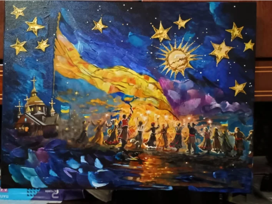 Картина «Україна несе світло» авторства Оксани Волошиної. Фото з фейсбук-сторінки майстрині