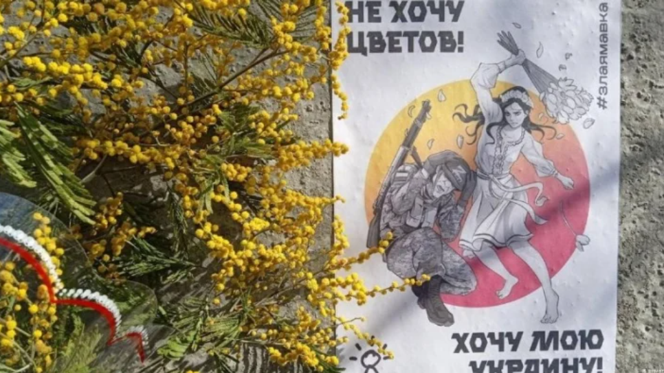 Акція "Не хочу квітів, хочу Україну", організована "Злої мавкою" на тимчасово окупацій території до 8 березня 2023 року. Фото: соц.мережі