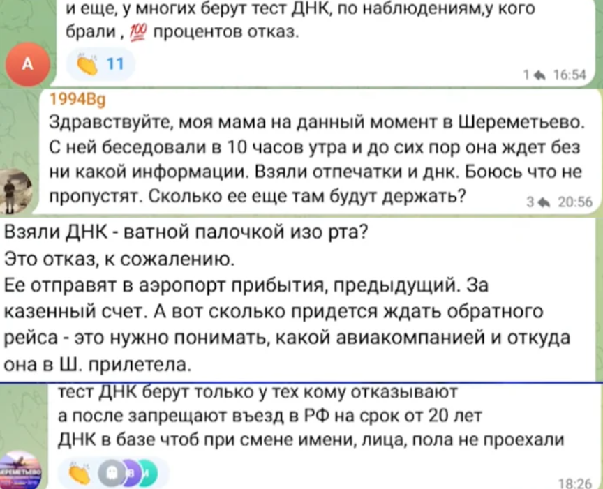Окрім допитів, перевірки телефонів, соцмереж і огляду тіла мелітопольців та інших людей, що хочуть приїхати на ТОТ, в аеропорту Шереметьєво з’явилася ще одна практика - масовий збір ДНК.