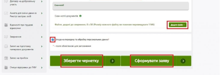 Натисніть «Сформувати заяву» (або «Зберегти чернетку», якщо хочете закінчити пізніше).