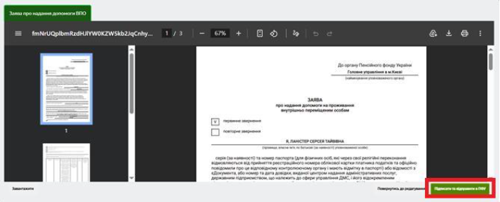 Перевірте всі дані у сформованому документі. Якщо все правильно, натисніть «Підписати та надіслати до ПФУ».