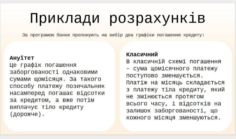 Програма передбачає компенсацію до 70 % першого внеску, 70 % щомісячних платежів протягом першого року кредитування та до 40 тисяч гривень на оформлення іпотеки.