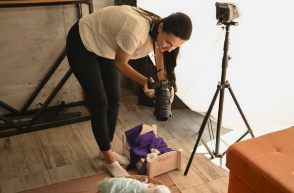 Я привожу з собою все обладнання: світло, реквізит, ліжечка, кошики, обмоточки, костюмчики, платтячка. Все це у мене своє – все відпарюю, все стерильно. Тому що немовлята дуже чутливі до цього. І я сама, звичайно, маю медичну книжку та здаю постійно аналізи».