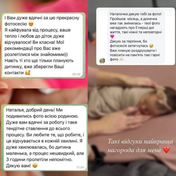 Відгуки на newborn фото від клієнтів Наталі Дабіжи. Скрін з інстаграм-сторінки фотографині