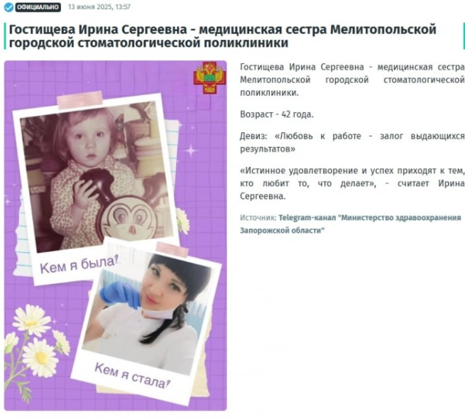 Дружина, Ірина Сергіївна, працює медсестрою в стоматологічній поліклініці й навіть брала участь у конкурсі фотографій, організованому окупантами.