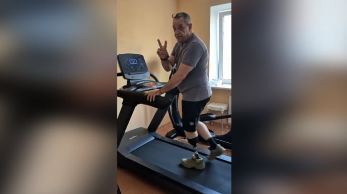 Олександр вчиться ходити з протезом ноги у Мелітопольському реабілітаційному центрі. Фото надане Олександром