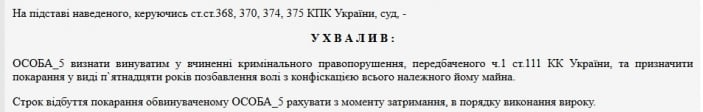 Максима Обухова визнано винним у державній зраді (ч.1 ст.111 КК України). Йому призначено покарання — 15 років позбавлення волі з конфіскацією всього майна.
