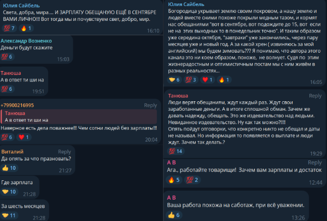 Коментатори зазначають: упродовж кількох місяців керівництво підприємств та окупаційна адміністрація постійно переносять строки виплат. При цьому, на скарги людей керівництво не відповідає.