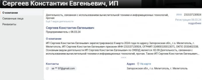 Ймовірно, і Сергєєв вирішив перекваліфікуватися. З березня 2024 року він значиться у російському реєстрі підприємців. Його профіль діяльності — «роботи, пов’язані з використанням обчислювальної техніки та інформаційних технологій».