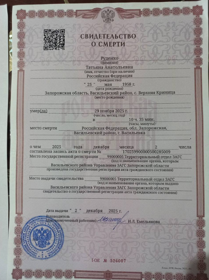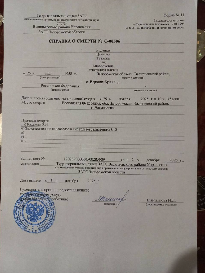 - На болі в животі вона вже скаржилася, і я просила племінника, щоб він вивіз її до лікарні. Але ж швидкі туди не ходять давно. І жоден приватник ні за які гроші світу не бажає заїжджати до села. Я сказала, щоб він ішов до російських солдатів і просив їх вивезти матір. Вони спершу відмовлялися. А потім у них був поранений і вони маму буквально закинули в машину і вивезли. Щоправда, куди ніхто не знав. Я думала, може, до Мелітополя чи до Дніпрорудного, - розповідає Катерина.