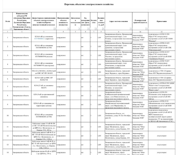 У списку переважно об’єкти критичної інфраструктури. Мова йде про: кабельні лінії і свердловини води. Цікаво, що і лініями електропередачи і свердловинами ворог користується вже більше 4 років. Більше того, їх вже давно передали російським структурам на баланс. І лише на початку 2026 року так зване Міністерство майнових і земельних відносин заявило про те, що воно починає перевірку цих об’єктів на предмет безгосподарності.