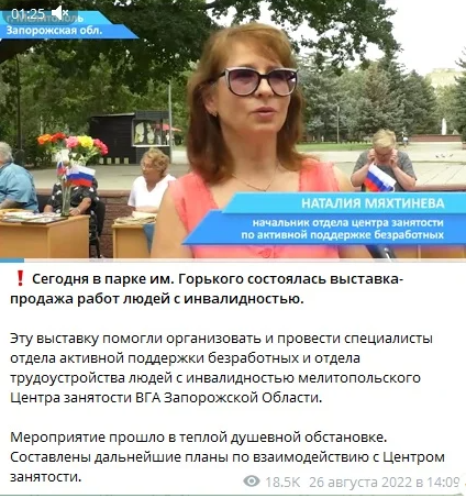 За організацію «правильної» картинки Мяхтеневу нагородили посадою «начальника відділу центру зайнятості» у структурі окупаційного Міністерства праці. І саме тут почалася її основна діяльність, про яку мовчать російські ЗМІ.