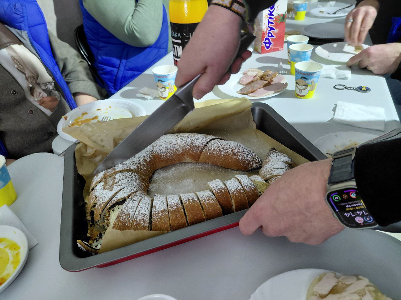Особливо теплою стала неформальна частина зустрічі – гостей пригощали традиційними українськими варениками зі шкварками та домашнім рулетом, який спеціально до візиту власноруч приготував Тімо.