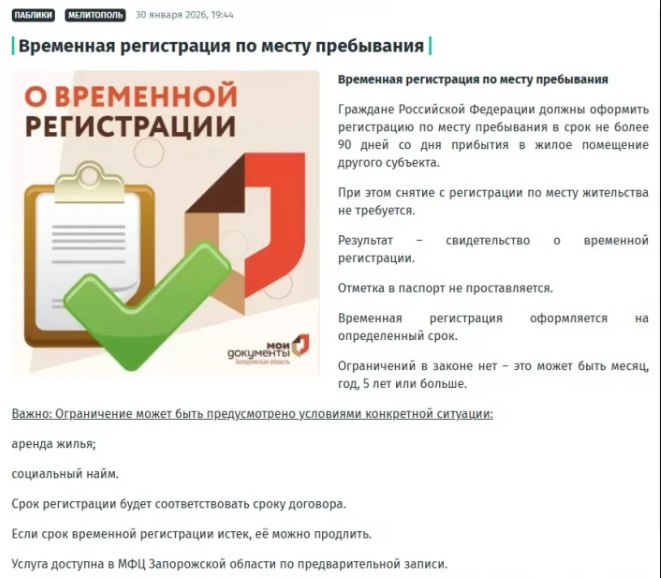 Згідно з новими директивами, будь-яка людина, яка проживає не за адресою постійної реєстрації понад 90 днів, зобов’язана оформити свідоцтво про тимчасову реєстрацію за місцем перебування.