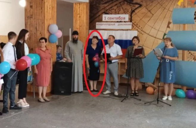 Слідство надало незаперечні докази: фото та відео з пропагандистських каналів, де Ковальова під російським триколором відкриває шкільну лінійку 1 вересня, запускаючи процес «перевиховання» українських дітей за російськими лекалами.