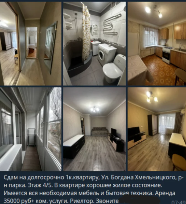«Мелитополь сейчас столица Запорожской области, и каждый стремится с этого сделать себе деньги. Торгашня ломит цены на рынках, люди с избытком жилплощади делают деньги на этом. Не переживайте, снимайте то, что есть, в дальнейшем цены будут ещё выше. А почему так, потому что много людей понаехало с деньгами с других регионов, а наши барыги на этом делают бизнес»