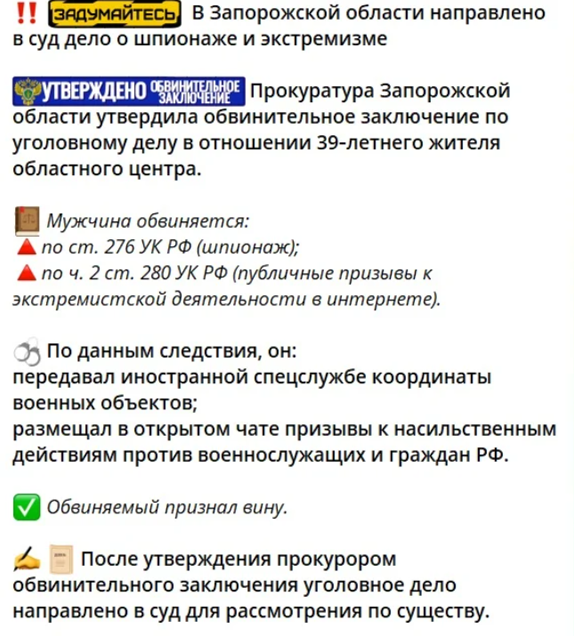 Окупаційна прокуратура вже зляпала обвинувачення за статтями «шпигунство» та «публічні заклики до екстремізму». Останнє додали за коментарі в соцмережах.