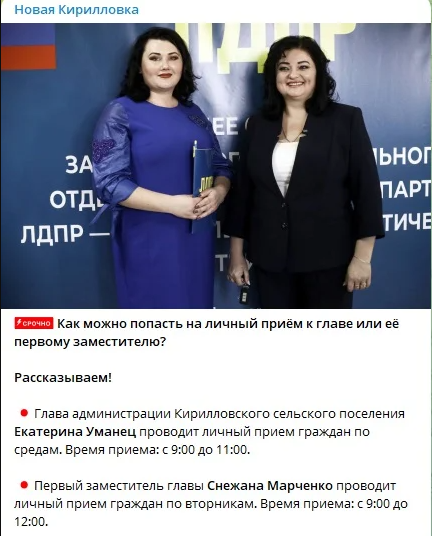 Марченко проводить прийом громадян. фото тг-каналу окупантів