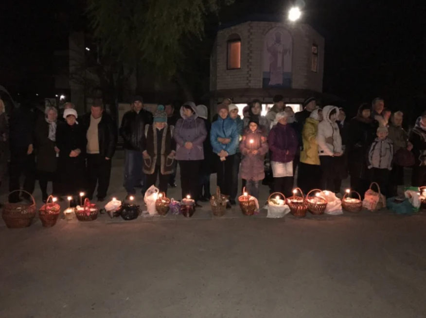 Освячення великодніх кошиків з 4 ранку у соборі А. Невського у м. Мелітополь, 2017 рік.