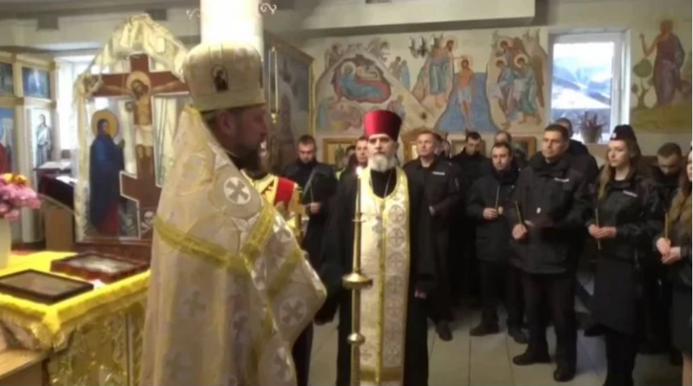 Смирнов проводить богослужіння для поліцейських-зрадників. фото тг-каналу окупантів